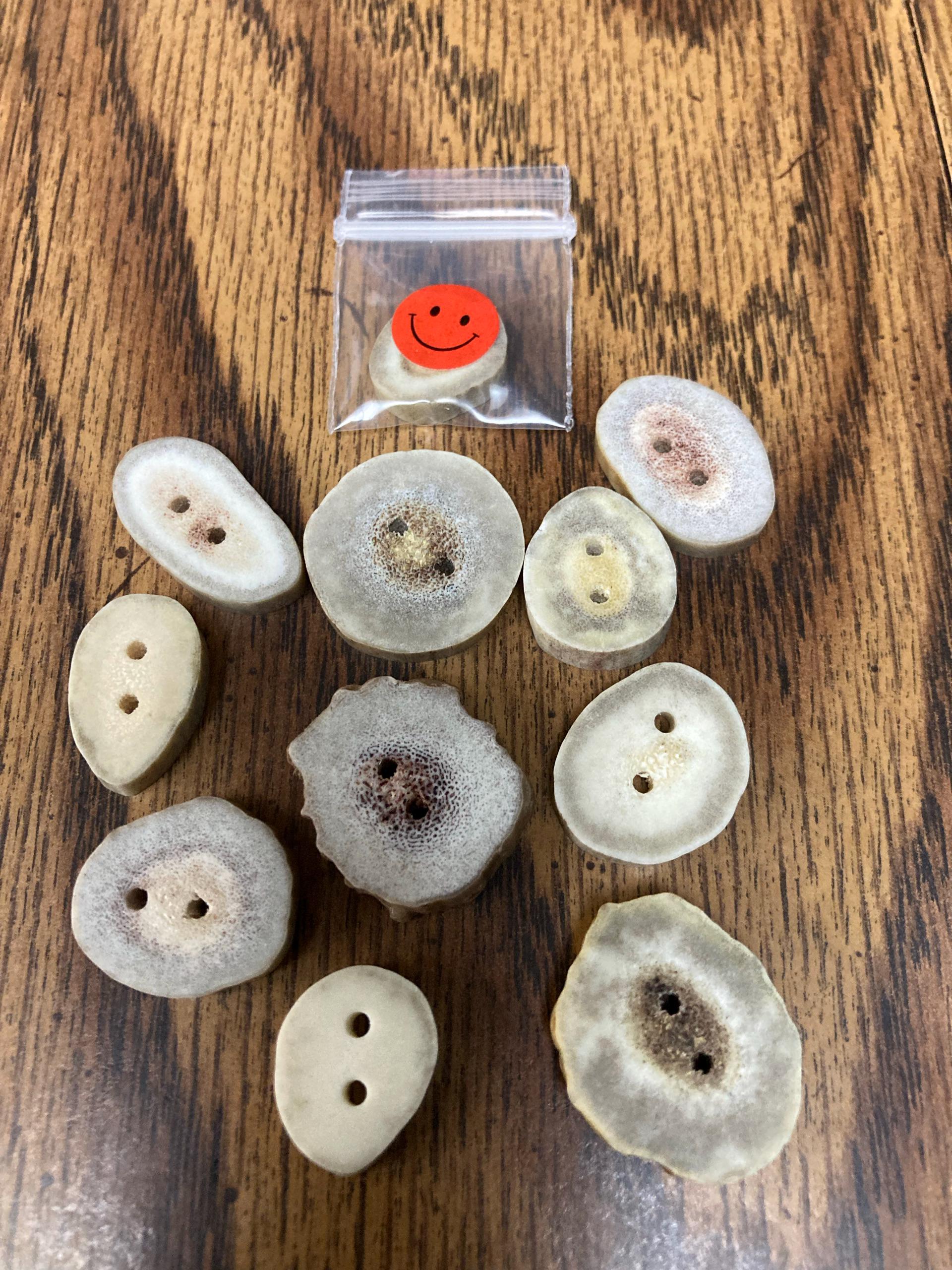 ~Each button has been lightly sanded and has two small button holes for your thread. Antler is naturally durable and has its own unique color hues and accents. ~For each order, you will receive ten random buttons.