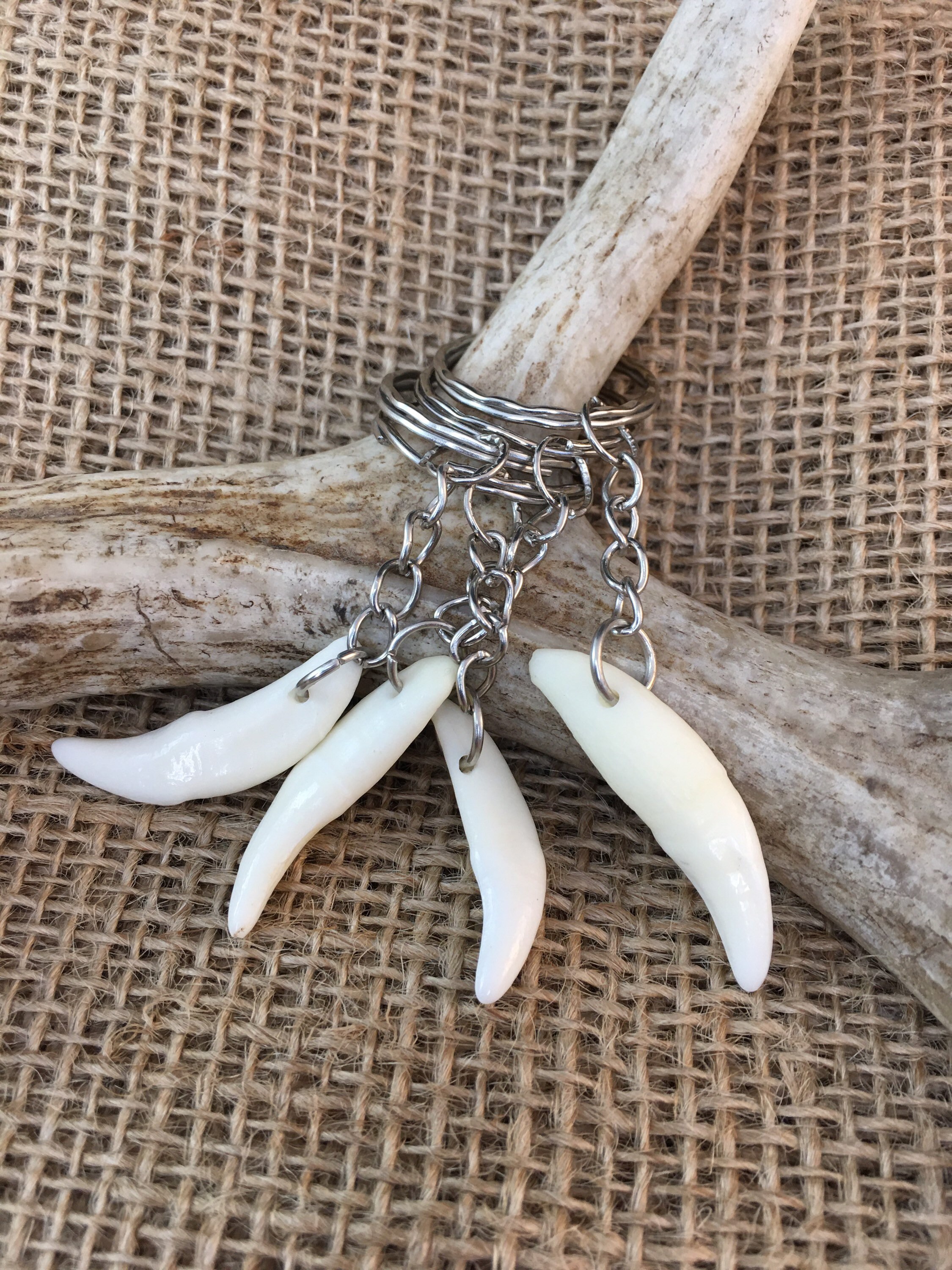 Real coyote tooth with chain and key ring.